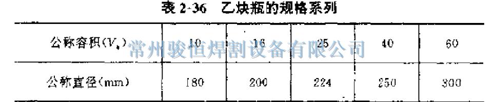 乙炔钢瓶的规格在 GB11638-89中有规定,如表2-36所列。